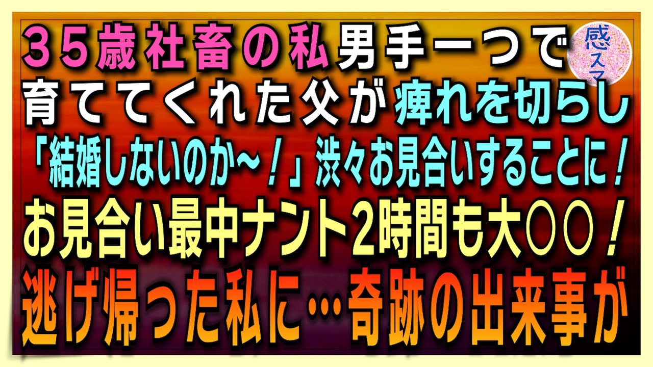 感動する話 35歳独身社畜の私 男手1つで育ててくれた父が痺れを切らし 結婚結婚しないのか 渋々お見合いすることに お見合い最中に2時間も大 逃げ帰った私に 奇跡の出来事が 恋愛 朗読 Yayafa